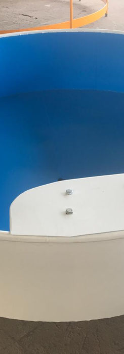 Reservatório redondo de aço, fácil de mover e sem necessidade de instalações fixas.